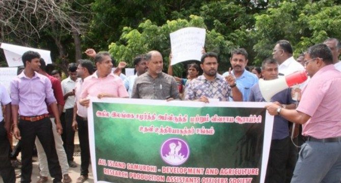 கல்வி இராஜாங்க அமைச்சர் விஜயகலா மகேஸ்வரனுக்கு எதிராக கிளிநொச்சியில் இன்று கண்டன ஆர்ப்பாட்டம் ஒன்று முன்னெடுக்கப்பட்டுள்ளது. கிளிநொச்சி மாவட்ட சமுர்த்தி உத்தியோத்தர்கள் அகில இலங்கை சமுர்த்தி அபிவிருத்தி மற்றும் விவசாய ஆராச்சி உதவி உத்தியோகத்தர் சங்கத்துடன் இணைந்து இந்த ஆர்ப்பாட்டத்தினை மேற்கொண்டிருந்தனர். கிளிநொச்சி பழைய கச்சேரிக்கு முன்பாக ஆரம்பமான கண்டன ஆர்ப்பாட்டம் பின்னர் மாவட்டச் செயலகம் வரை சென்று மாவட்ட அரச அதிபருக்கான மகஜர் மேலதிக மாவட்ட அரச அதிபரிடம் […]