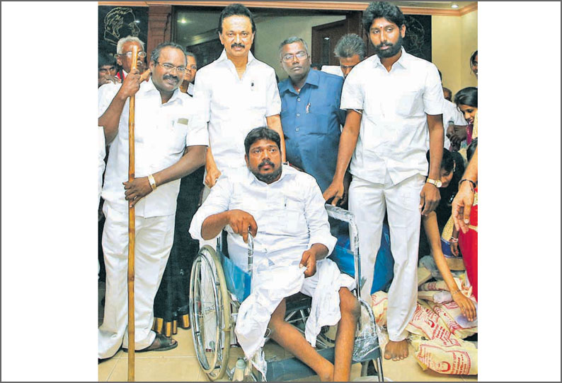 உலக மாற்றுத் திறனாளிகள் தினத்தை முன்னிட்டு தி.மு.க. சார்பில் மாற்றுத்திறனாளிகளுக்கு நலத்திட்ட உதவிகள் வழங்கும் நிகழ்ச்சி சென்னை அண்ணா அறிவாலயத்தில் நேற்று நடந்தது. நிகழ்ச்சியில், தி.மு.க. செயல் தலைவரும், சட்டமன்ற எதிர்க்கட்சி தலைவருமான மு.க.ஸ்டாலின் 300–க்கும் மேற்பட்ட மாற்றுத்திறனாளிகளுக்கு சக்கர நாற்காலிகள், தையல் எந்திரங்கள், ஆடைகள் என நலத்திட்ட உதவிகளை வழங்கினார். பின்னர் மு.க.ஸ்டாலின் நிருபர்களுக்கு பேட்டியளித்தார். அப்போது அவர் கூறியதாவது:– ஆர்.கே.நகர் இடைத்தேர்தலில் ஆளுங்கட்சியை வீழ்த்த வேண்டும். இந்த …