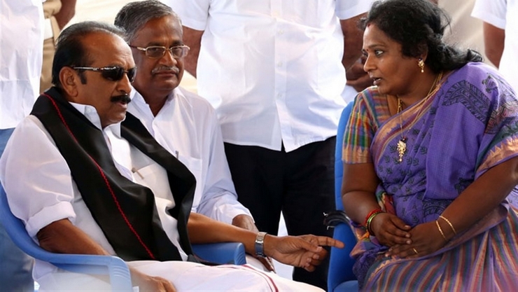 வைகோ இந்துத்துவாவை எதிர்ப்பதாக இருந்தால் முதலில் எதிர்க்க வேண்டியது ராகுல் காந்தியையும், திமுகவையும்தான் என பாஜக தமிழக தலைவர் தமிழிசை சௌந்தரராஜன் கூறியுள்ளார். தமிழக மக்கள் நலன் கருதி ஆர்.கே.நகர் இடைத்தேர்தலில் திமுக வேட்பாளர் மருதுகணேஷுக்கு ஆதரவு கொடுக்க முடிவு செய்யப்பட்டிருப்பதாக வைகோ அறிவித்தார். திராவிட இயக்கத்தை சிதைத்து இந்துத்துவாவை திணிக்க முயற்சிக்கும் பாஜகவை வீழ்த்த திராவிட இயக்கமான திமுகவை ஆதரிப்பதாக வைகோ கூறினார். இதற்கு பதி[ல் அளித்துள்ள தமிழக …
