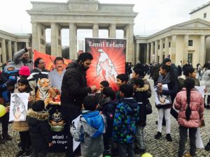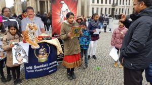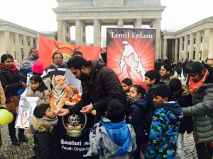 அந்தவகையில் யேர்மன் தலைநகரில் வரலாற்றுமிக்க சதுக்கத்தில் ( Brandenburger Tor முன்பாக ) தமிழ் இளையோர்கள் , தமிழின உணர்வாளர்கள் கேக்(குதப்பி) வெட்டியும், மற்றவர்களுடன் வாழ்த்துக்களையும், இனிப்புக்களையும் பகிர்ந்து தமது மகிழ்ச்சியை ஆரவாரமாகக் கொண்டாடினர்.