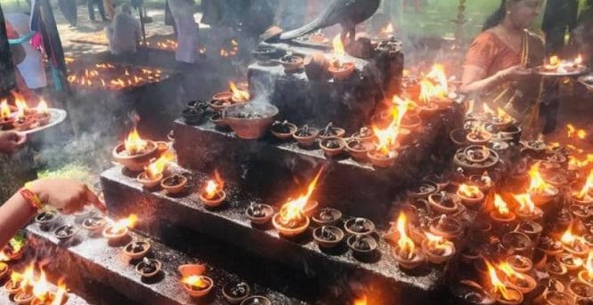 எள்ளெண்ணெய் எரிக்கும் வழிபாட்டில் மக்கள்!!