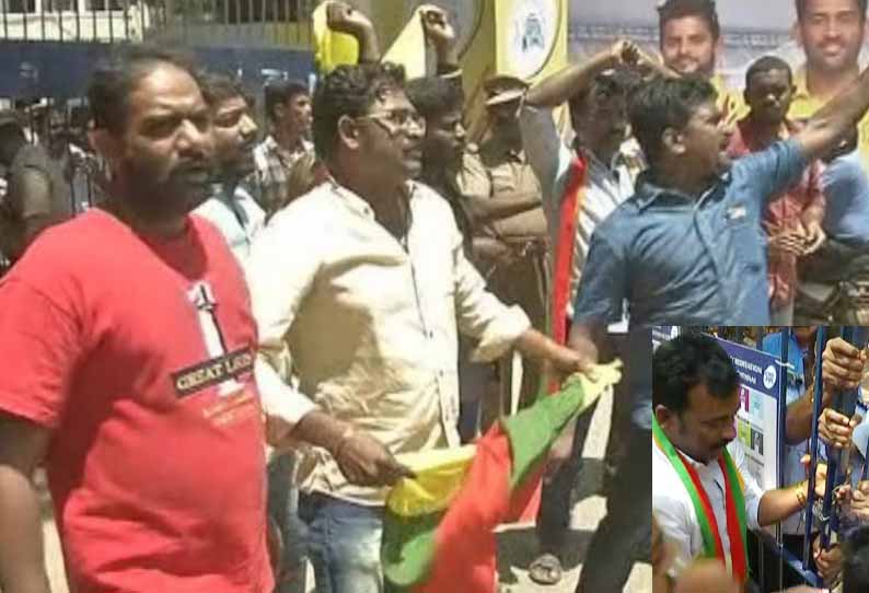 ஐபிஎல் போட்டிக்கு எதிர்ப்பு: மைதானத்திற்கு பூட்டுப்போட்டு தமிழக வாழ்வுரிமைக் கட்சியினர் போராட்டம்