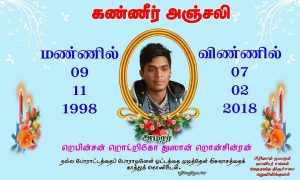 -இவ்வாறு உயிரிழந்தவர் மன்னார் நானாட்டான் பிரதேசச் செயலாளர் பிரிவுக்குற்பட்ட நறுவிலிக்குளம் கிராமத்தைச் சேர்ந்த றெபின்சன் றொட்ரிகோ துஸான் றொன்சின்ரன் (வயது-20) என தெரிய வருகின்றது.