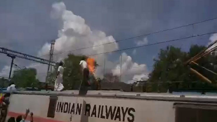 ரயில் மீது ஏறி போராட்டம் : அதிர்ச்சி வீடியோ