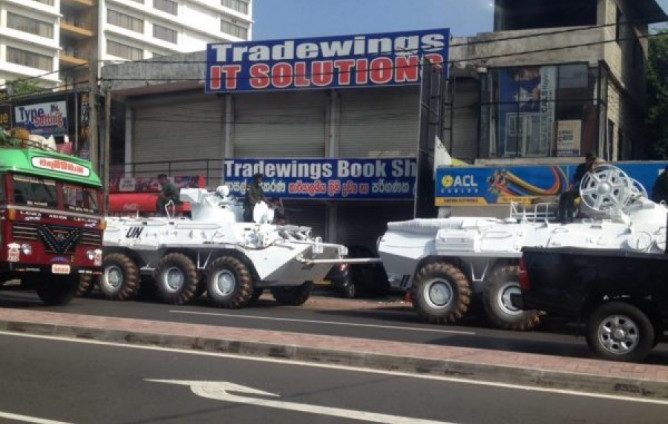 கொழும்பில் கனரக வாகனங்களுடன் முப்படை ரோந்து !