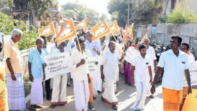 மன்னாரில் திருக்கேதீஸ்வரம் ஆலயத்தின் சிவராத்திரி வளைவு உடைக்கப்பட்டதையும், நந்திக்கொடியை காலால் மிதித்ததையும் கண்டித்து நேற்று மன்னாரில் அமைதி வழியில் பேரணி, கவனயீர்ப்பு போராட்டம் நடைபெற்றது. இன்று காலை 8.30 மணியளவில் ஆலடிப்பிள்ளையார் ஆலயத்திற்கு முன்பாக ஒன்று கூடியவர்கள், மன்னார் மாவட்ட செயலகத்திற்கு அமைதிப் பேரணியாக சென்றனர். மாவட்ட செயலகத்திற்கு எதிராக, வீதியின் இருபுறமும் நூற்றுக்கணக்கான மக்கள் பதாதைகளையும் ஏந்தியபடி, அமைதி வழியில் எதிர்ப்பை தெரிவித்தனர். மன்னார் மாவட்ட இந்து குருமார் […]