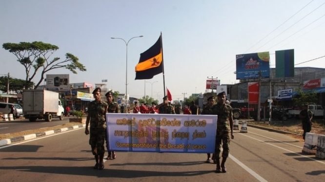 “சமாதானத்தின் தசாப்த நிறைவு தினம்“ எனும் தொணிப்பொருளில் இராணுவத்தின் பெரும் ஊர்வலம் கிளிநொச்சியில் இன்று இடம்பெற்றது. கிளிநொச்சி ஏ9 பிராதான வீதி கரடி போக்குச் சந்தியிலிருந்து ஆரம்பமான ஊர்வலத் டிப்போச் சந்தி வரை இடம்பெற்றது. கிளிநொச்சியிலுள்ள இராணுவத்தின் அனைத்துப் படைப்பிரிவினரும் இந்த ஊர்வலத்தில் பங்குபற்றினர்.